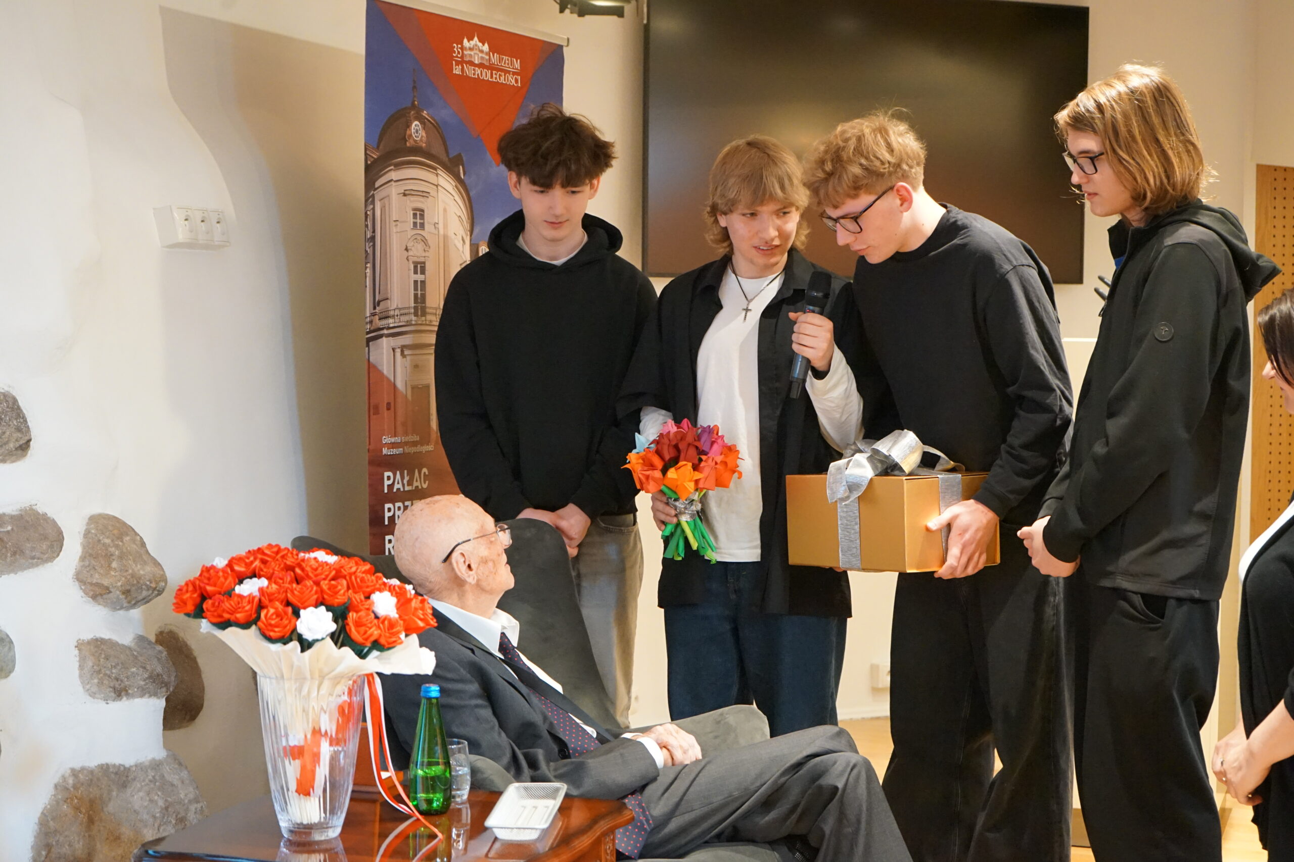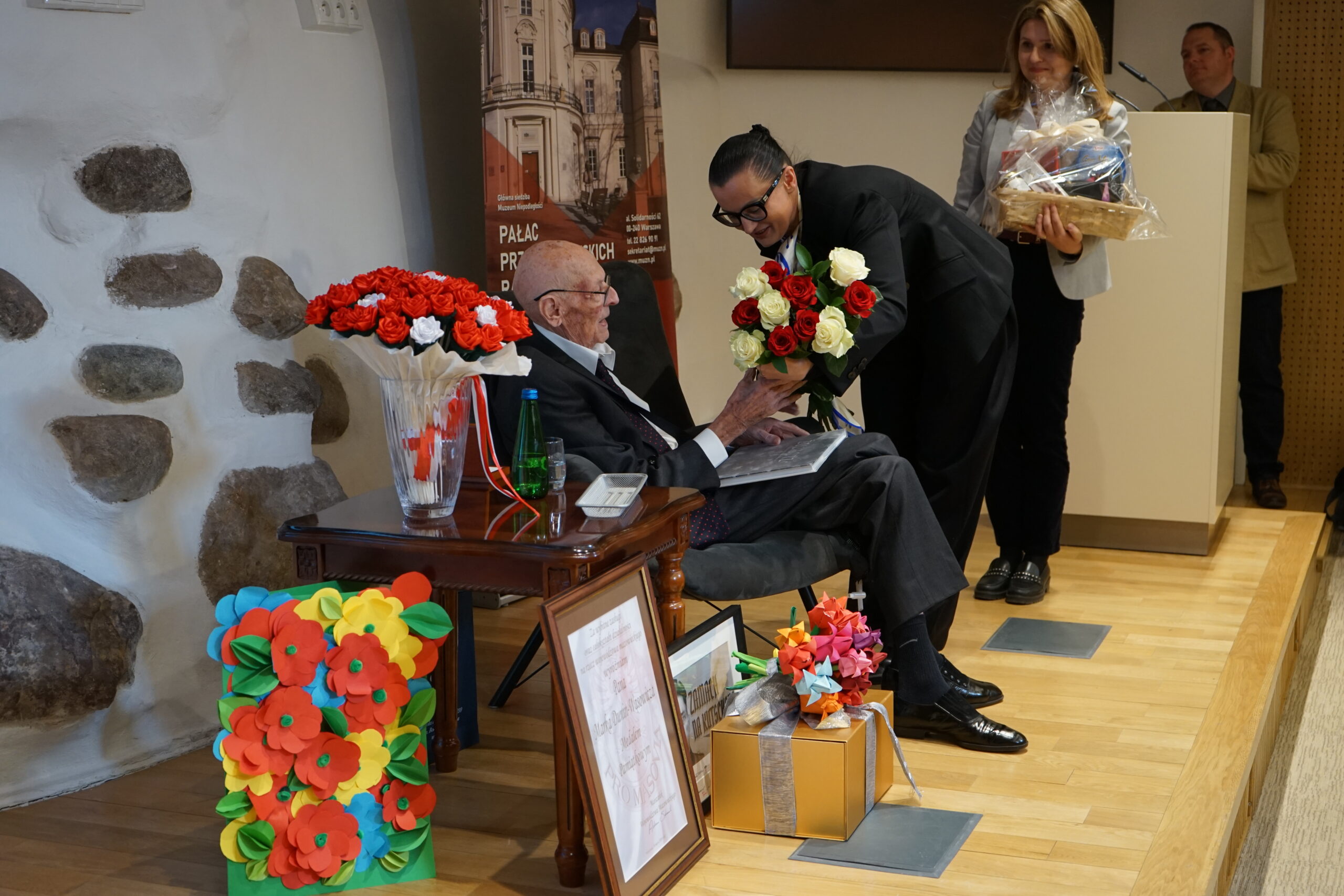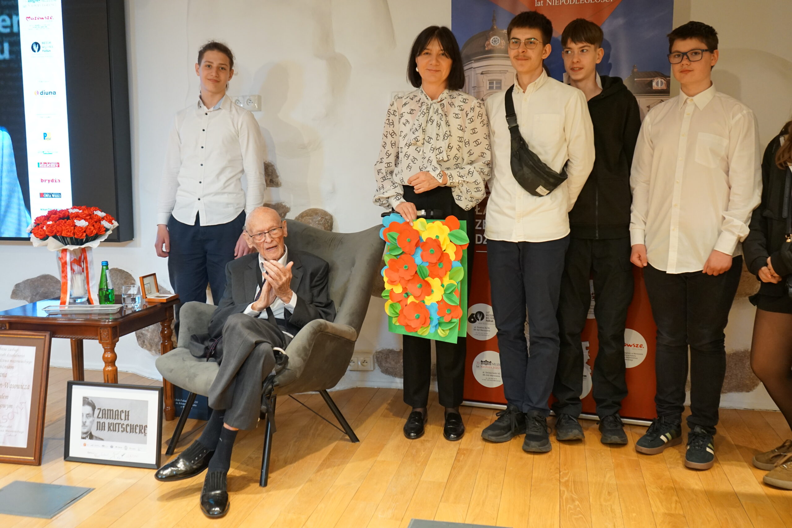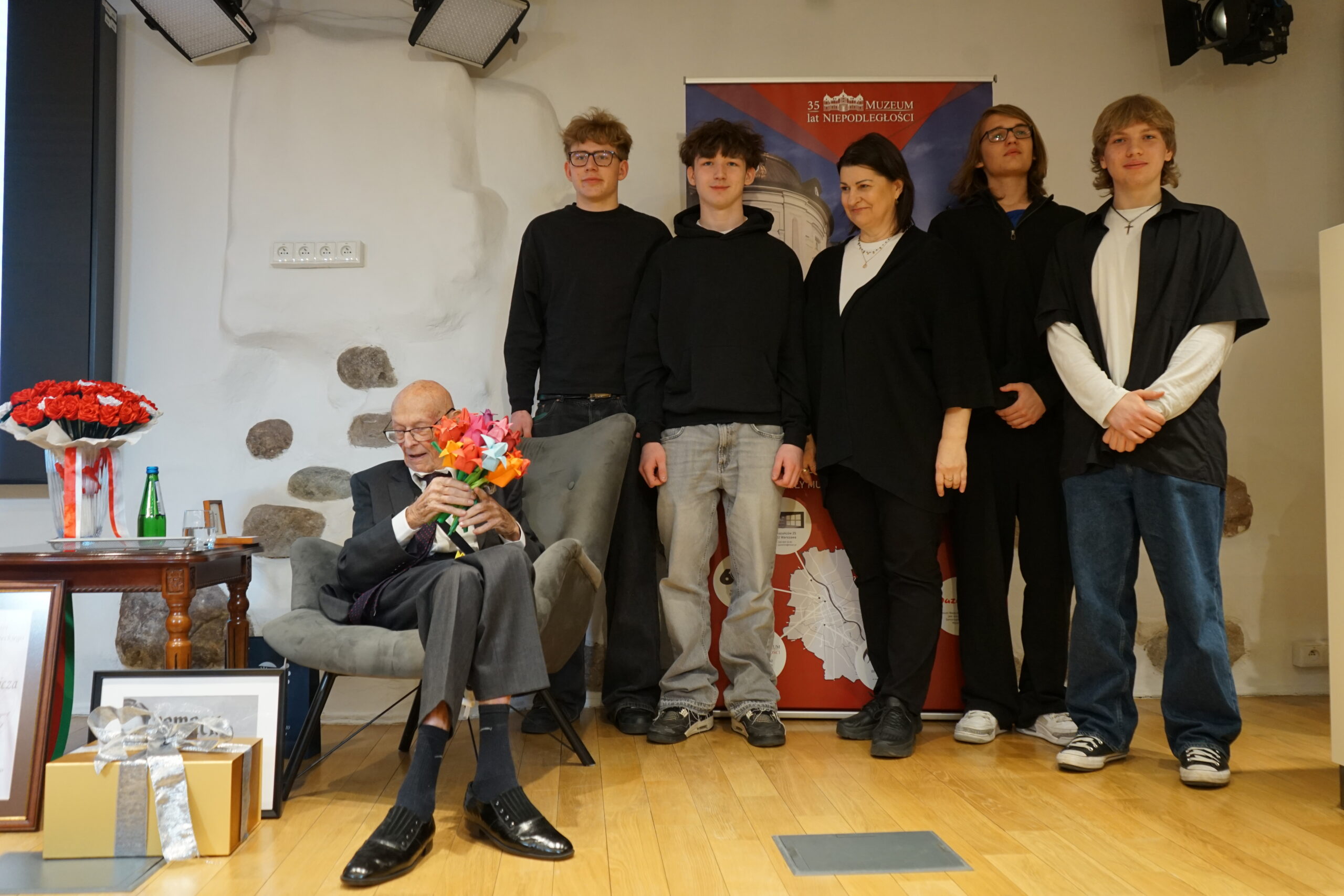 26 marca 2026 roku w Muzeum Niepodległości odbyło się wyjątkowe i niezwykle poruszające wydarzenie – jubileusz 100. rocznicy urodzin Marka Dunin-Wąsowicza, byłego więźnia Pawiaka oraz KL Stutthof. W spotkaniu uczestniczyła rodzina i przyjaciele p. Marka Dunin-Wąsowicza. Wśród gości byli również przedstawiciele władz samorządowych, instytucji kultury i nauki: Karolina Misiejko – rzecznik Funduszy Europejskich Urzędu Marszałkowskiego Województwa Mazowieckiego, Agnieszka Pawelec reprezentująca Prezydenta m.st. Warszawy Rafała Trzaskowskiego, Grzegorz Rogólski, radny Dzielnicy Śródmieście,  dr hab. Marcin Owsiński, dyrektor Muzeum KL Stutthof w Sztutowie, Beata Regulska, wicedyrektor Szkoły Podstawowej nr 210 im. Bohaterów Pawiaka wraz z uczniami oraz Elżbieta Kiedysz – wicedyrektor XL Liceum Ogólnokształcącego z Oddziałami Dwujęzycznymi im. Stefana Żeromskiego w Warszawie wraz z młodzieżą. Jubilata i gości przywitała dyrektor Muzeum Niepodległości Katarzyna Legawiec podkreślając niezwykłą biografię pana Marka i wkład w pamięć historyczną. Podczas uroczystości Pan Marek Dunin-Wąsowicz zostały odznaczony medalem pamiątkowym Pro Masovia przyznanym przez Marszałka Województwa Mazowieckiego Adama Struzika. Szczególnym momentem jubileuszu było wręczenie laurek i kwiatów wykonanych przez młodzież z warszawskich szkół. Uroczystość zakończył występ przygotowany przez Fundację Art. w wykonaniu sopranistki Aleksandry Okrasy przy akompaniamencie  Włodzimierza Trzeciaka.