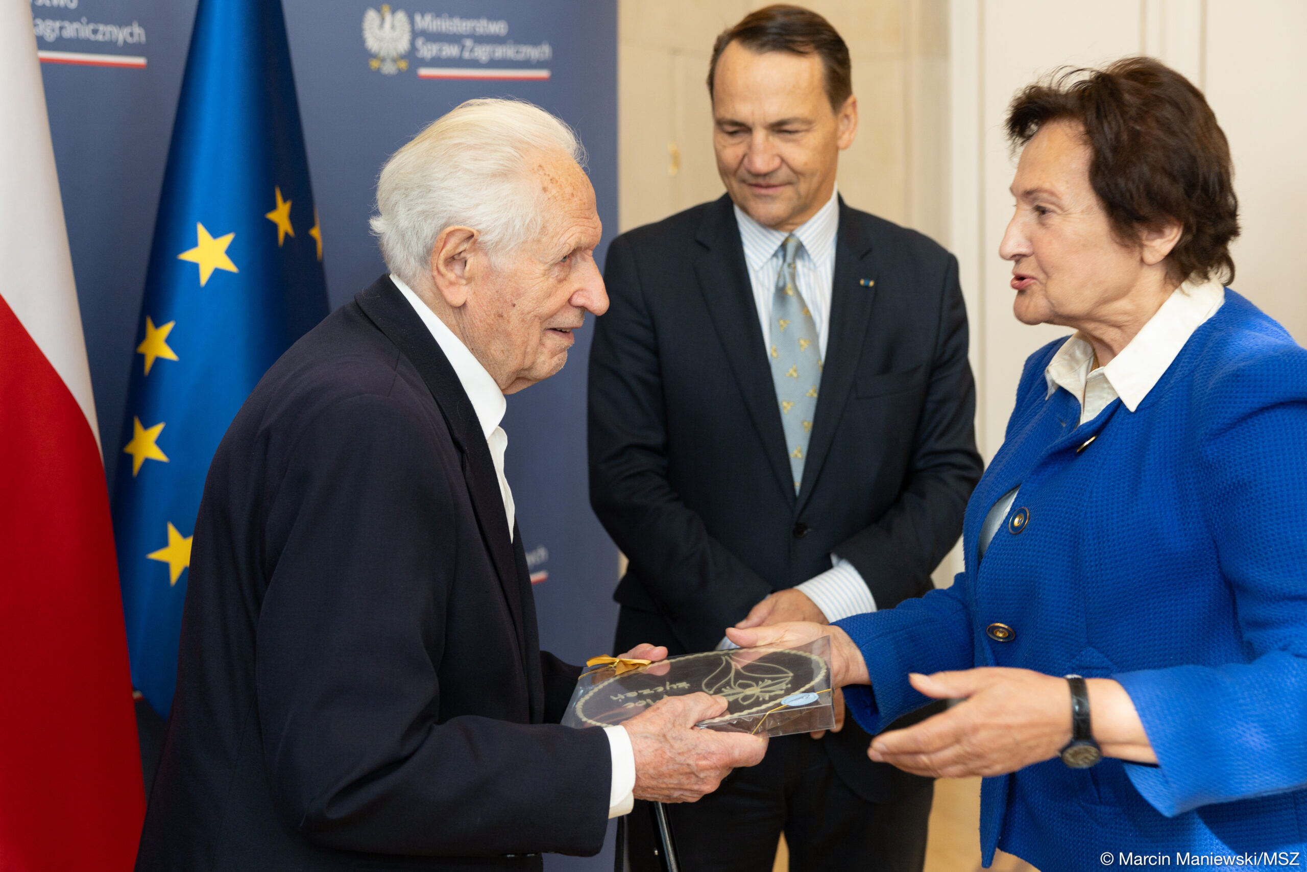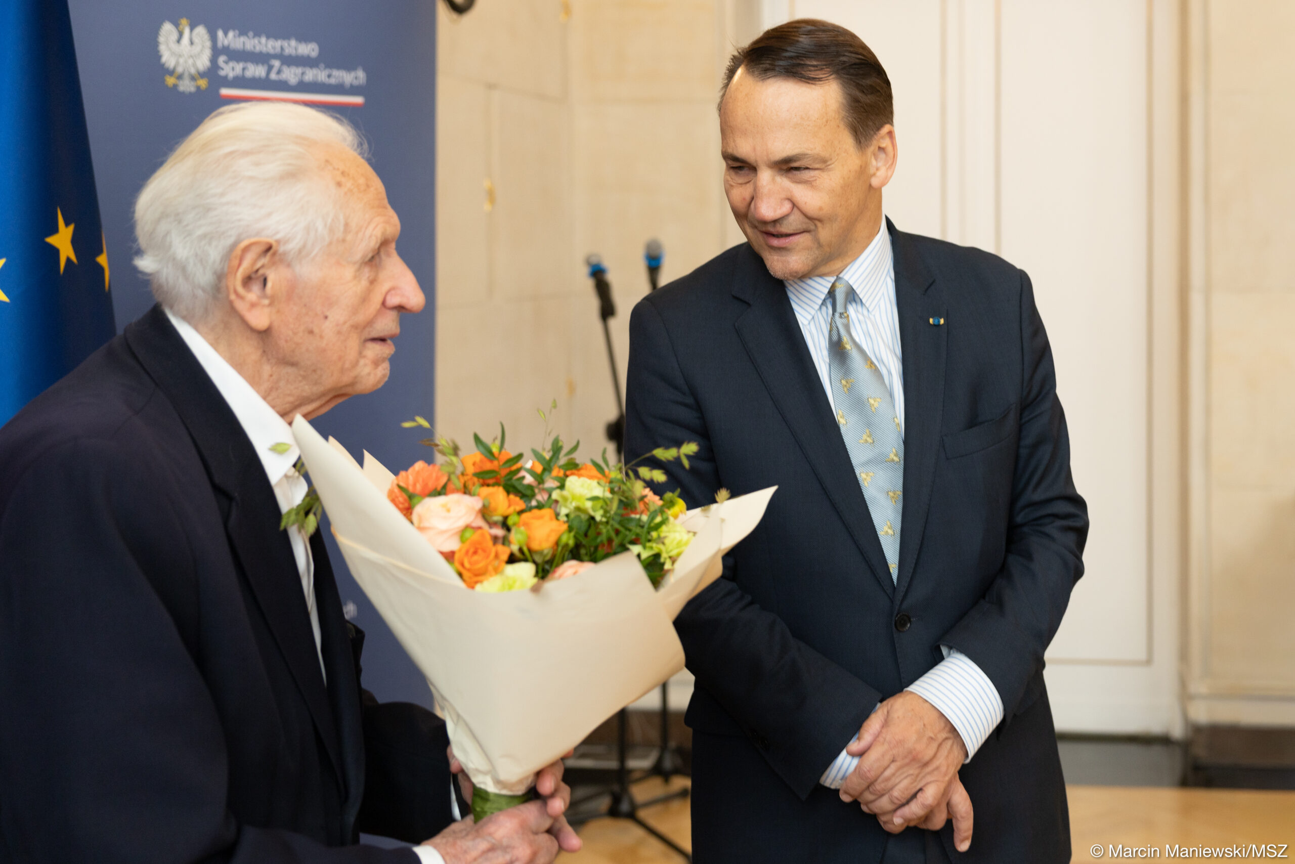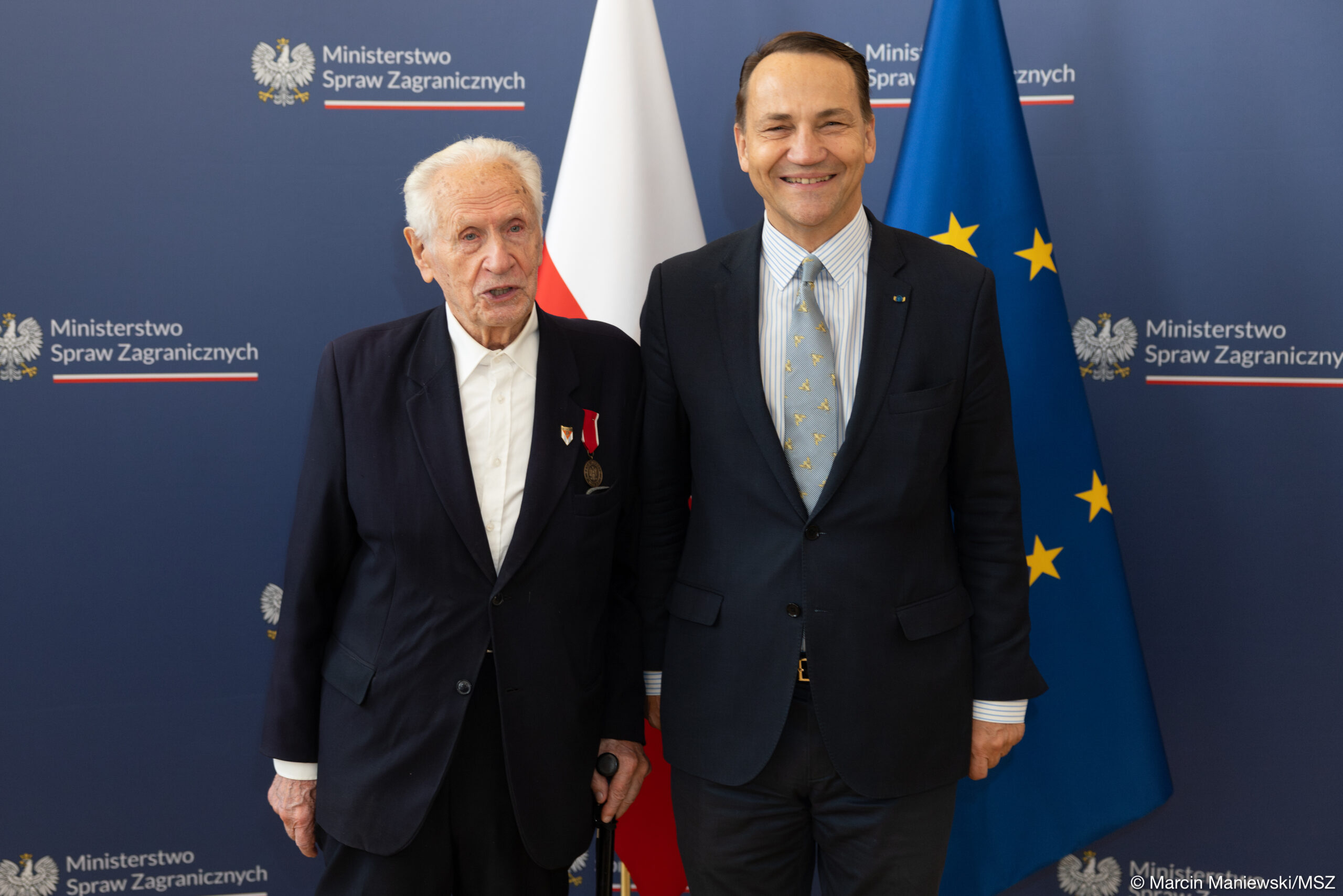 Z wielką radością informujemy, że były więzień Pawiaka i obozów koncentracyjnych Stanisław Zalewski został uhonorowany przez Ministra Spraw Zagranicznych Radosława Sikorskiego odznaką „Bene Merito”. Uroczystość odbyła się 17 września 2025 r. Stanisław Zalewski jest prezesem Polskiego Związku Byłych Więźniów Politycznych Hitlerowskich Więzień i Obozów Koncentracyjnych. W czasie II wojny światowej był więźniem Pawiaka i niemieckich obozów koncentracyjnych Auschwitz‑Birkenau oraz Mauthausen-Gusen. Od lat aktywnie działa na rzecz upamiętnienia historii II wojny światowej i obozu koncentracyjnego Gusen. Spotyka się z młodzieżą nie tylko z Polski, ale również z zagranicy dzieląc się swoimi doświadczeniami i przestrzegając przed skutkami nienawiści. Odbierając odznakę z rąk wicepremiera Stanisław Zalewski podkreślił, że „Jedna rzecz, której nie uznaję, to że człowiek nie chce być dla drugiego człowieka człowiekiem. Żyjemy przecież razem”.